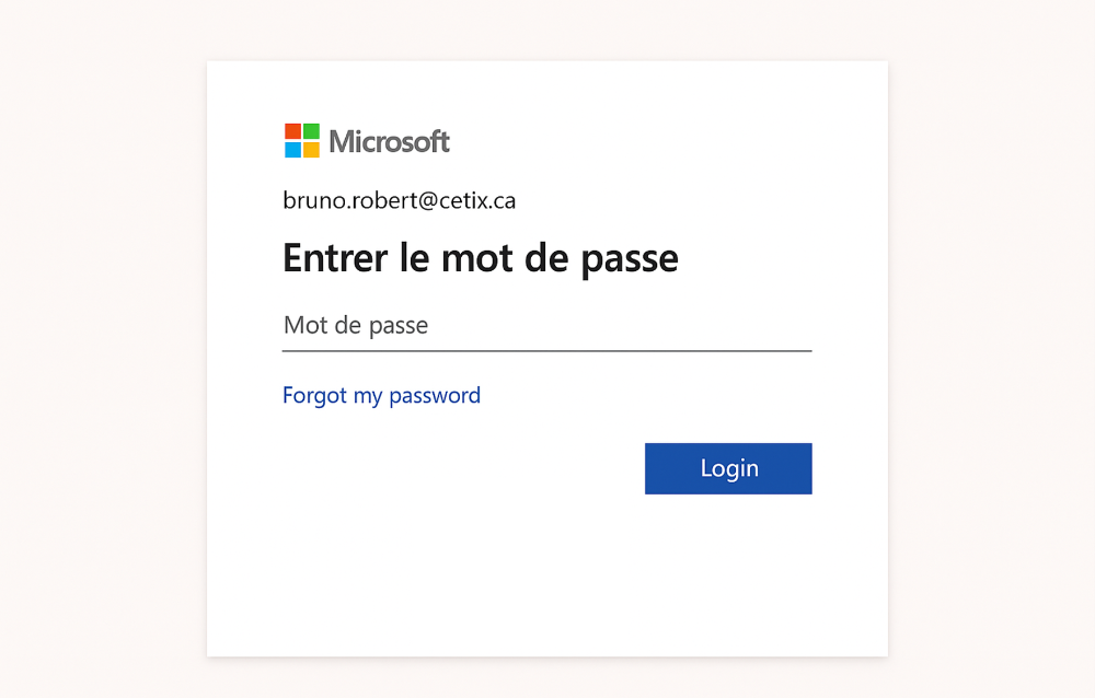 L’utilisateur est dirigé vers une page de connexion simulée, qui reproduit fidèlement l’apparence d’un portail authentique. Cette étape permet de mesurer le réflexe de vigilance et la capacité à identifier une tentative frauduleuse.
